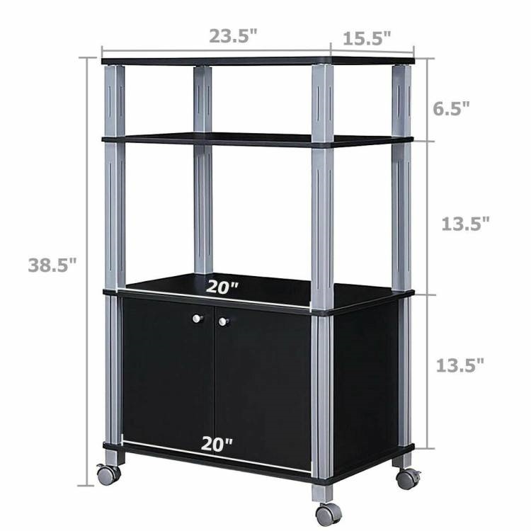 Assembly is a breeze with this multifunctional 3 tier microwave baker's rack with 4 wheels! This 3 shelves and a 2-door storage cabinet microwave oven stand provides large storage room for all your kitchen needs.