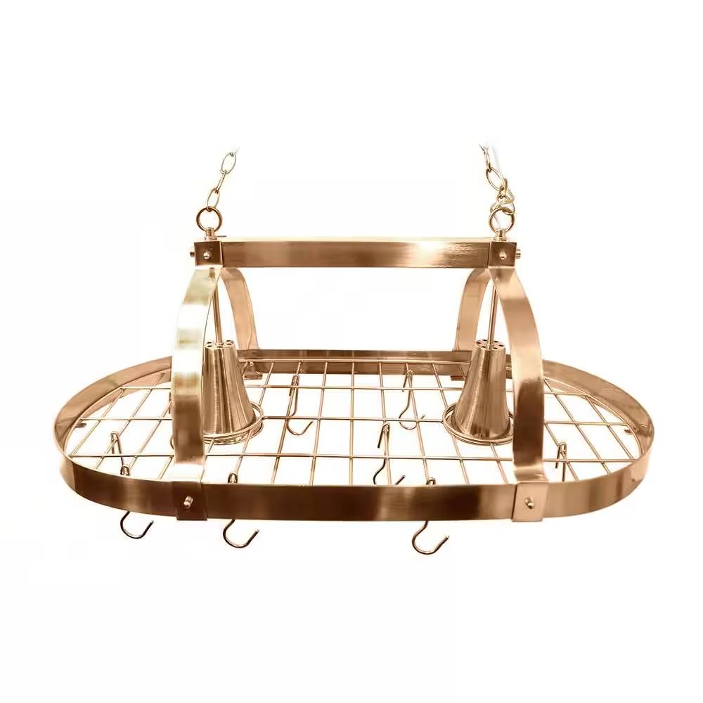 Oval Ceiling Mount Kitchen Pot Rack in Copper Finish with 2 Lights