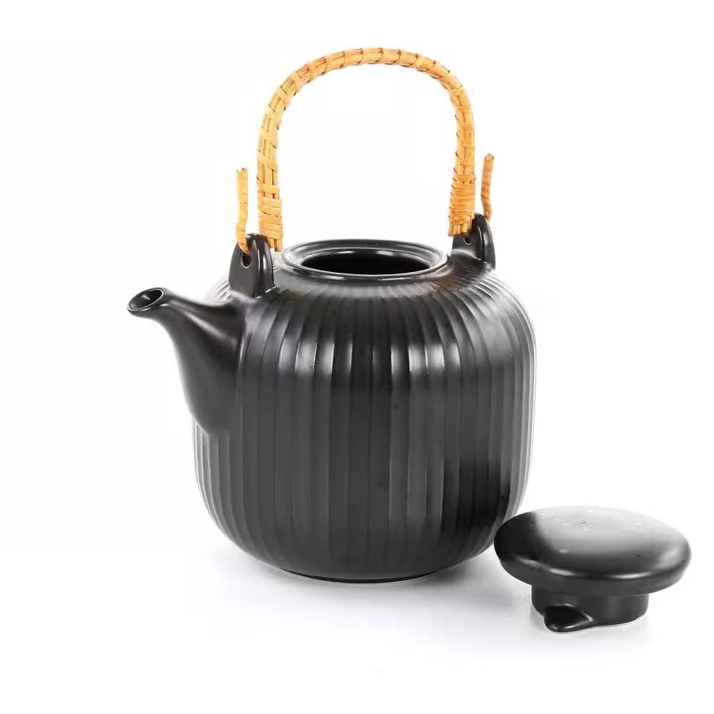 1.2 Quart Black Stoneware Teapot Kettle with Rattan Handle 1.2 Quart Black Stoneware Teapot Kettle with Rattan Handle 1.2 Quart Black Stoneware Teapot Kettle with Rattan Handle 1.2 Quart Black Stoneware Teapot Kettle with Rattan Handle