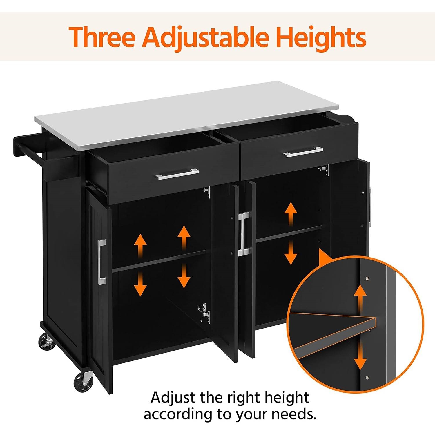 Black Kitchen Island Cart with Stainless Steel Top 2 Drawers and Cabinet Black Kitchen Island Cart with Stainless Steel Top 2 Drawers and Cabinet Black Kitchen Island Cart with Stainless Steel Top 2 Drawers and Cabinet Black Kitchen Island Cart with Stainless Steel Top 2 Drawers and Cabinet Black Kitchen Island Cart with Stainless Steel Top 2 Drawers and Cabinet
