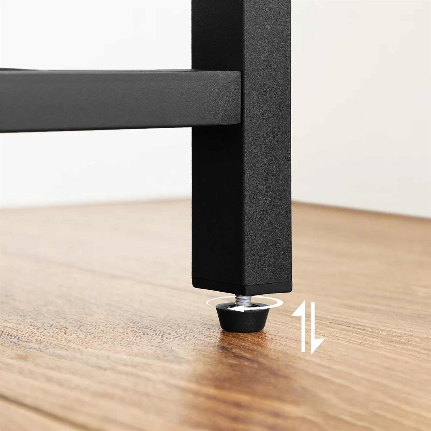 Turn to This Modern Industrial Metal Wood Bakers Rack with Microwave Shelf...for extra counter space in the kitchen, an empty corner in the dining room, or any home lacking a coffee bar. Standing at 23.6"L x 15.7"W x 59.6"H, it offers oodles of storage without overwhelming your space. Its Big Capacity Comes From...4 storage shelves and 12 S hooks. Your cereal bottles go on the top, microwave on the large surface, and boxes on the 2 mesh shelves...what’s even better is that the 12 hooks keep mugs and pans at your fingertips. Its Stability Comes From...strong 0.8" x 0.8" steel tubes and quality particleboard for the firm structure of this kitchen shelf, as well as adjustable feet on the bottom that help keep everything in place, even on uneven floors. Its Timeless Flavor Comes From..the rustic romance pairing with steel toughness. Spice up your kitchen with this metal baker’s rack that brings a relaxing industrial vibe into life.