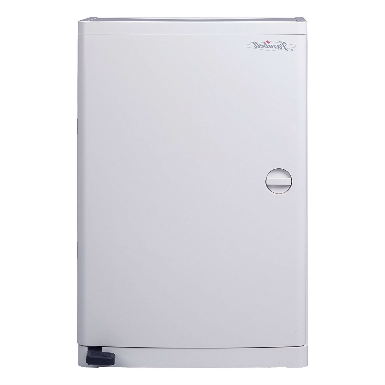 This No Hands 18-Gallon Kitchen Trash Can in White with Food Pedal Lid is a sturdy, extra large 18 gallon capacity unit with a clean profile, works well in busy area where there is heavy volume. Daily trash removal is quick, easy and never wastes liner material. Ideal use for commercial offices, hospitals, labs, dentist's office, hamper in locker room.